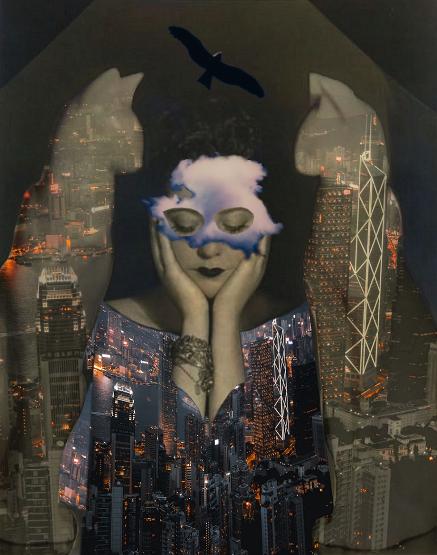 My name is Anita Darowska-Blok, I am a self-taught collage artist of Polish origine, living most of my life in Amsterdam and the surroundings. I started making analog collages 28 years ago, some time after moving to the Netherlands. It arose from the need to express the emotions of isolation, emigration, getting to know the new world in a way other than words alone. For the first two or three years, next to writing letters, I made collage books, which I gifted to a friend once a year, she still has them.