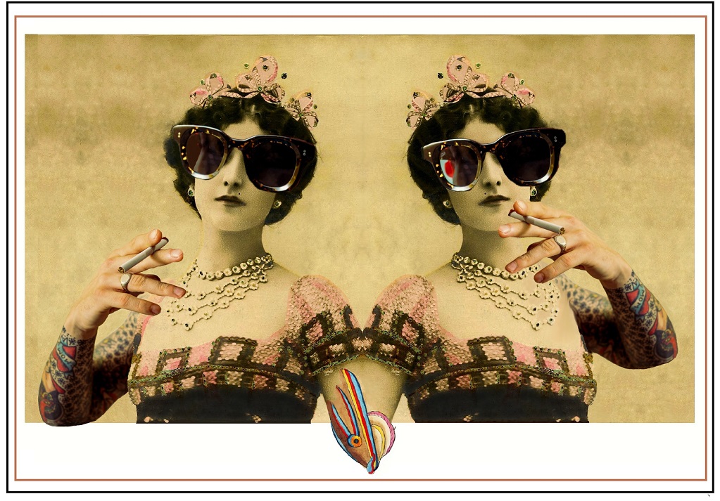 My work is often very intuitive, I have a main idea of how I want the collage to turn out and I let the imagination take over, without thinking too much about the process. Something inspires me, it can be an image or a color or a structure and I build my work around that object, playing with different shapes, pieces, color combinations/derivations. When the collage is done, I feel it inside me. Currently, I use a lot of vintage photos in my works (mainly women) and images of fauna and flora. I love works by Man Ray or Frida Kahlo, Dada and surrealist movement but I also find inspiration in chaotic beauty of punk. I like to use book pages, typography or unusual materials in my collages. I am fascinated with symmetry and have created many hybrid creatures that came from the depths of my psyche. Nowadays, I work digital and analog and I am learning every day. My biggest muse in creating the art are the Cats, hence my instagram handle @anitameowart.