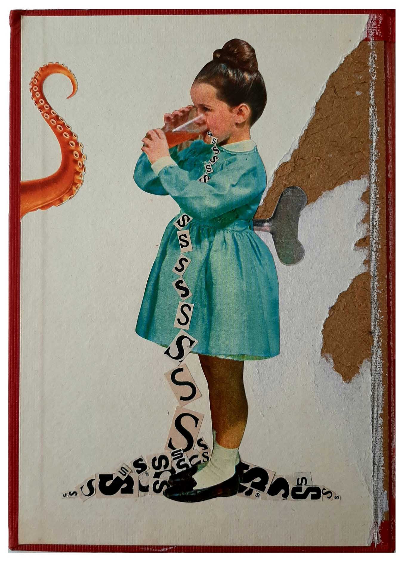 Mi nombre es Laura, docente y collagista desde hace casi dos años. Descubrí el collage analógico casi por casualidad, al encontrarme con mucho material antiguo que me dejó mi papá, como revistas, fotos, folletos y demases que no quería tirar, pero sí darle otra utilidad. Disfruto de la libertad que me da el collage, de no tener que seguir reglas y expresar mi inconsciente sin limitaciones. Es una herramienta para poner en imágenes lo que en palabras a veces no puedo expresar. También disfruto darle un nuevo significado al material que alguna vez perteneció o bien a un ser querido o también a personas desconocidas: siento que es una manera de rendirles homenaje y que una parte de su historia siga viva en mi obra.