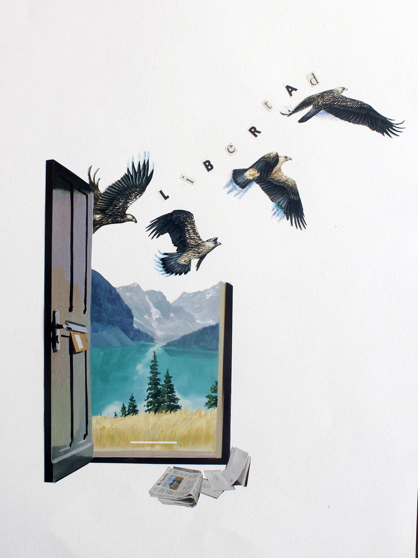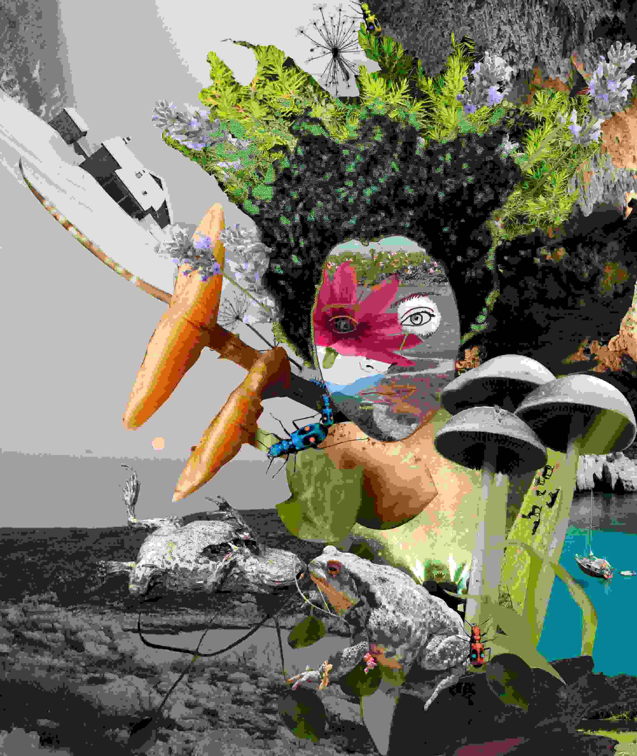 Cuando me mudé a Barcelona tuve la fortuna de encontrar maestras y compañeras que comparten la obsesión de unir imágenes, elementos y objetos, así que desde hace dos años empecé mi proyecto personal Represión y Libertad. Actualmente estudio animación en Stop Motion y hago collages en todas partes, a todas horas, algunos llegan al papel, otros se desvanecen en mi mente de collagista.