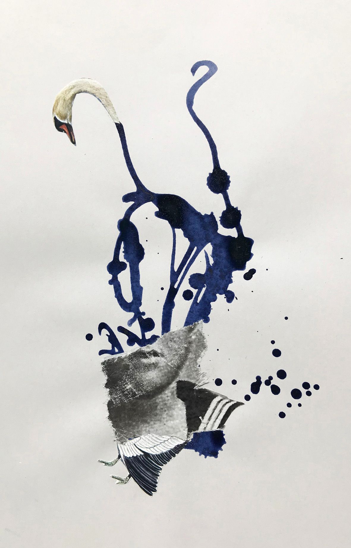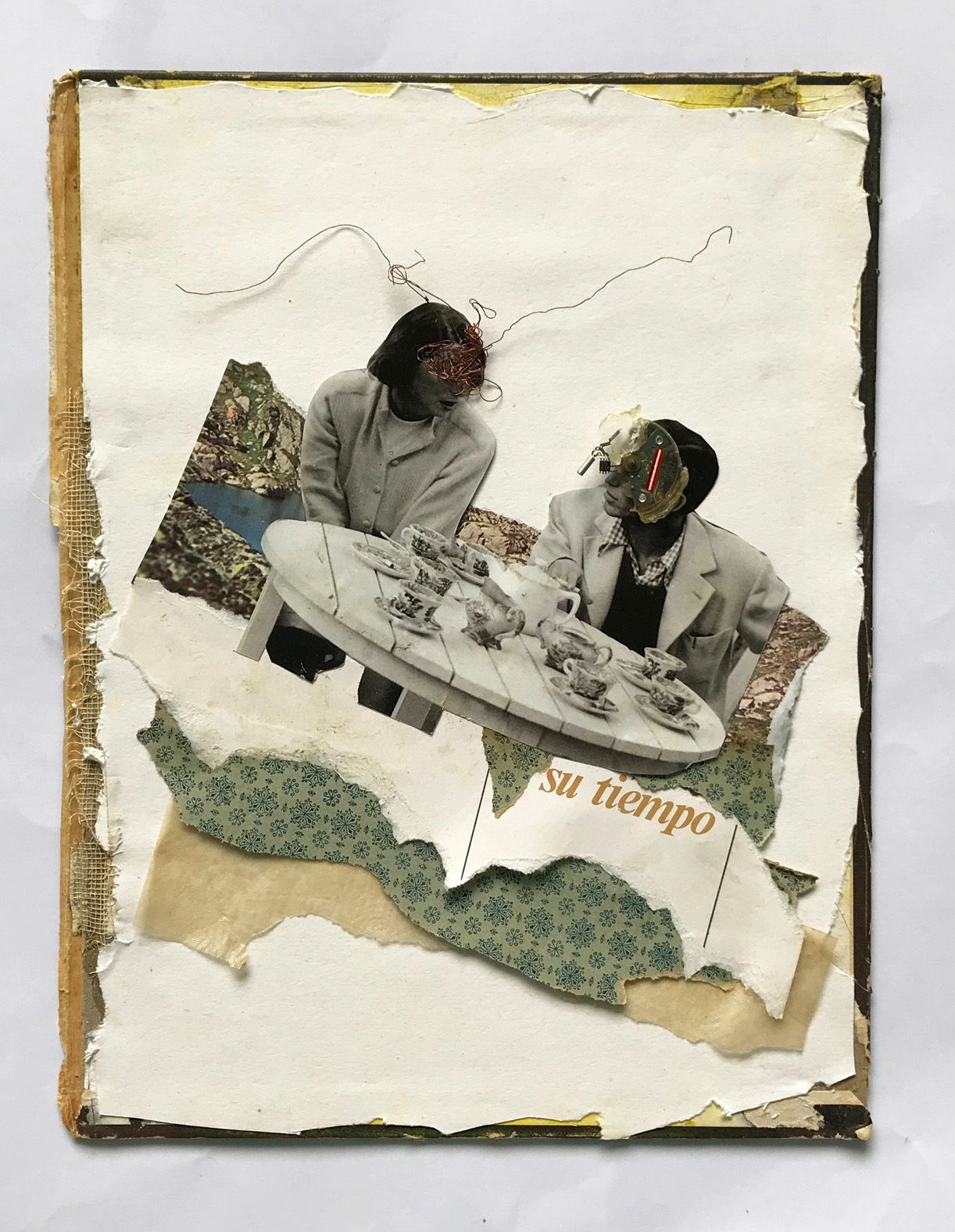 Al collage creo que llego sin darme cuenta , o sin nombrarlo. En un momento me doy cuenta que la dinámica del collage era lo que más me llamaba la atención cuando observaba obras de arte ( que no necesariamente eran collages en si mismas, pero quizás tenían algunos elementos como parte de la totalidad ) Llego desde un lugar lúdico, armando fondos y figuras y luego pegándolos sobre objetos, hasta que luego me puse a investigar en pensarlos sólo como obra, empiezo a hacer talleres, a producir muchísimo, primero solo con papel, después de un tiempo incorporo los objetos, y ya me voy al assemblage.A esto se sucedieron casi sin darme cuenta un montón de exposiciones, colectivas e individuales, festivales, etc , se abrió un mundo entero (o no tan entero, pero mundo al fin) de collage. Hoy siento que es una dinámica que siempre me acompañó simbólicamente en muchos aspectos de mi vida.