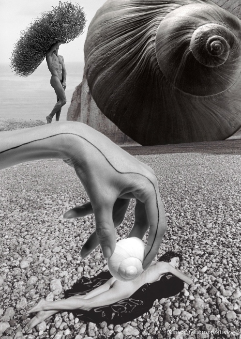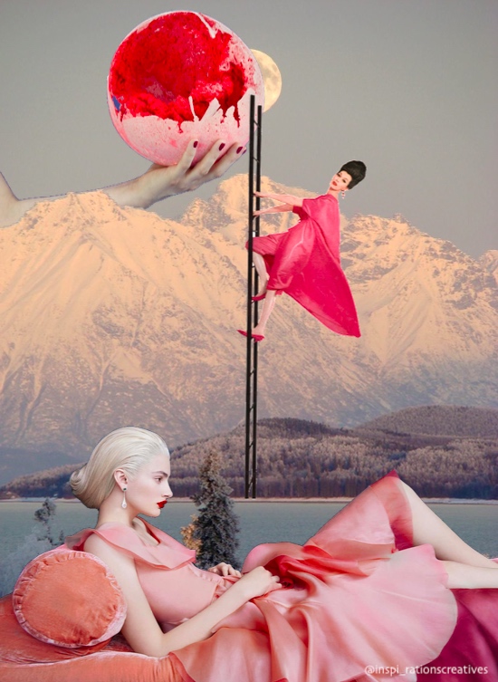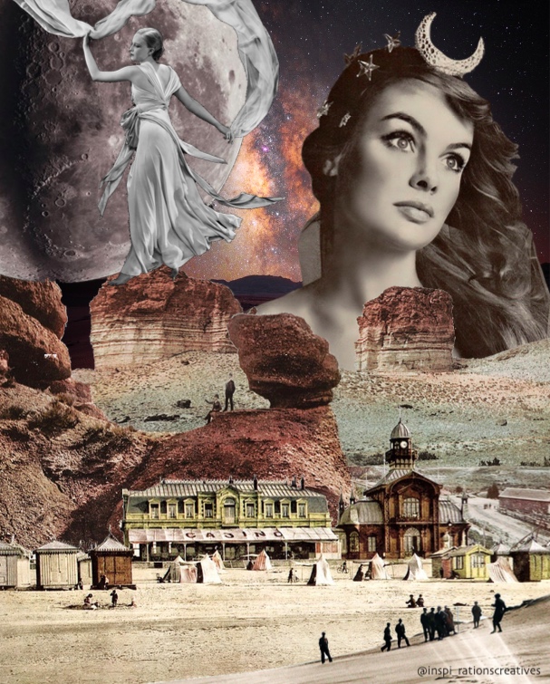 Ni dessinatrice, ni peintre, le collage me permet de créer librement une nouvelle réalité, sans limites techniques et en lien direct avec l'inconscient, en puisant dans des sources très diverses.