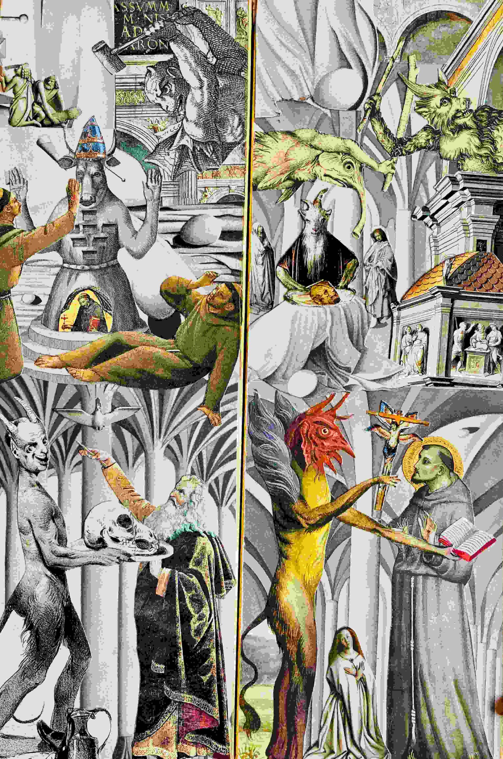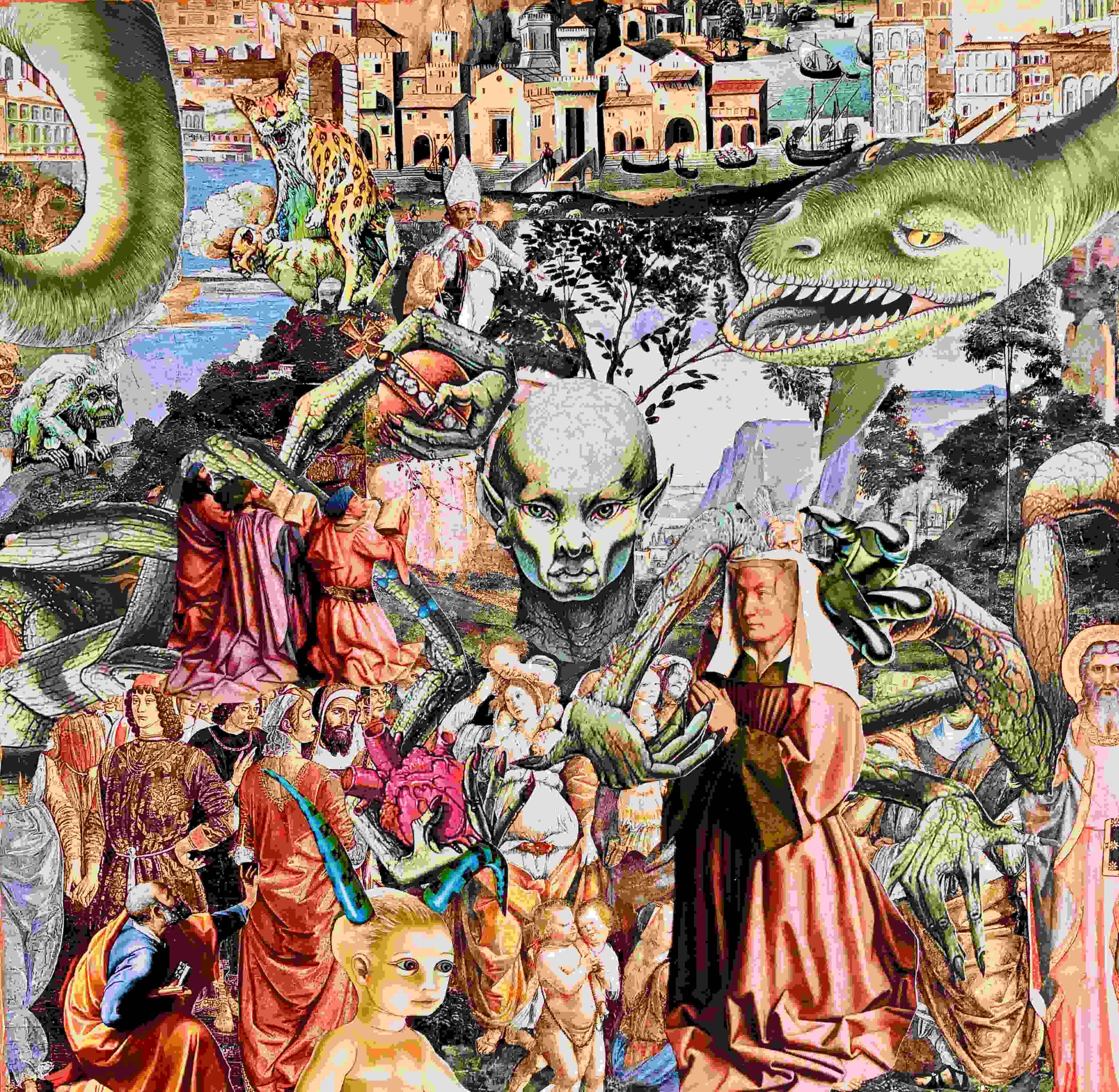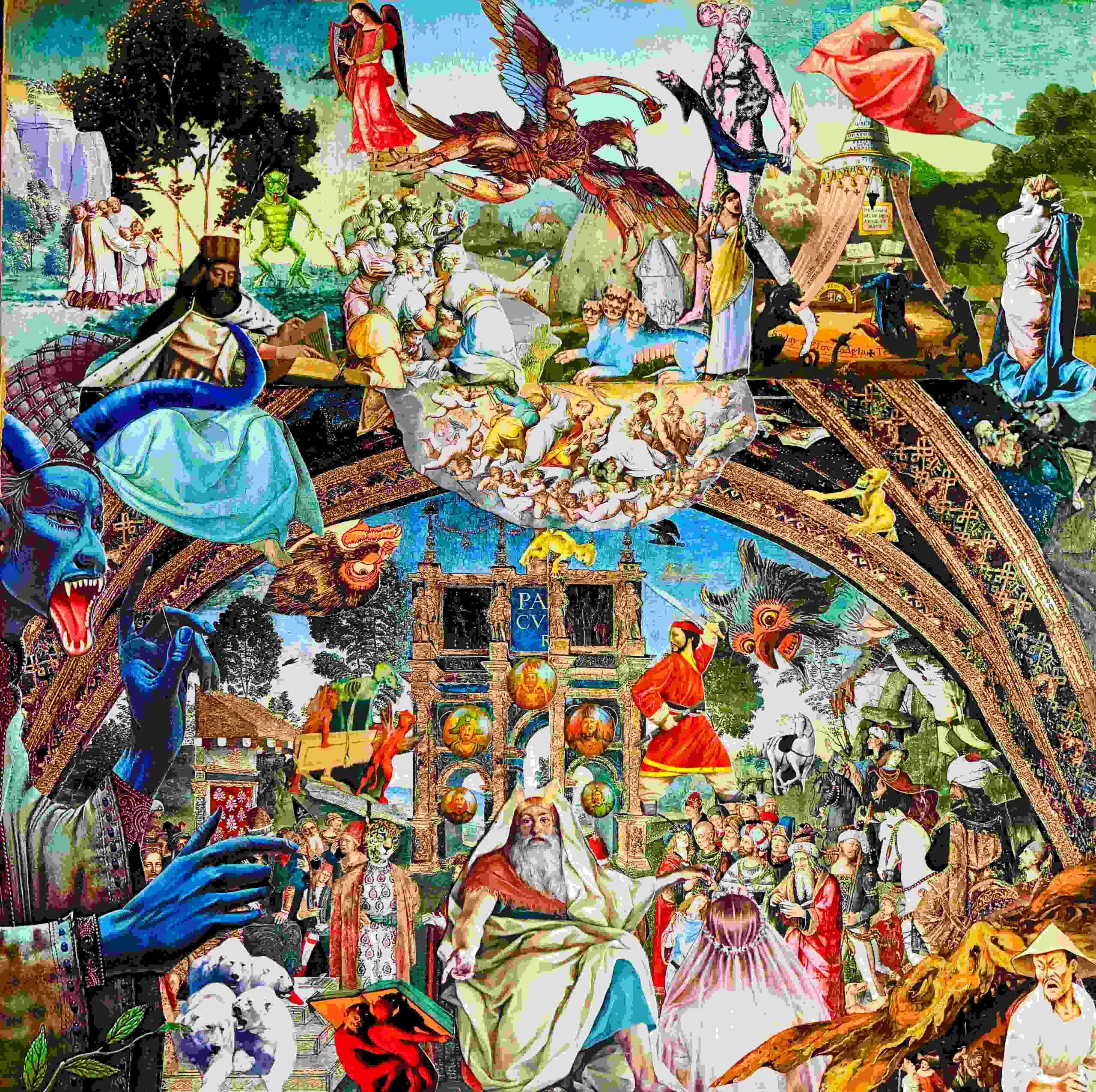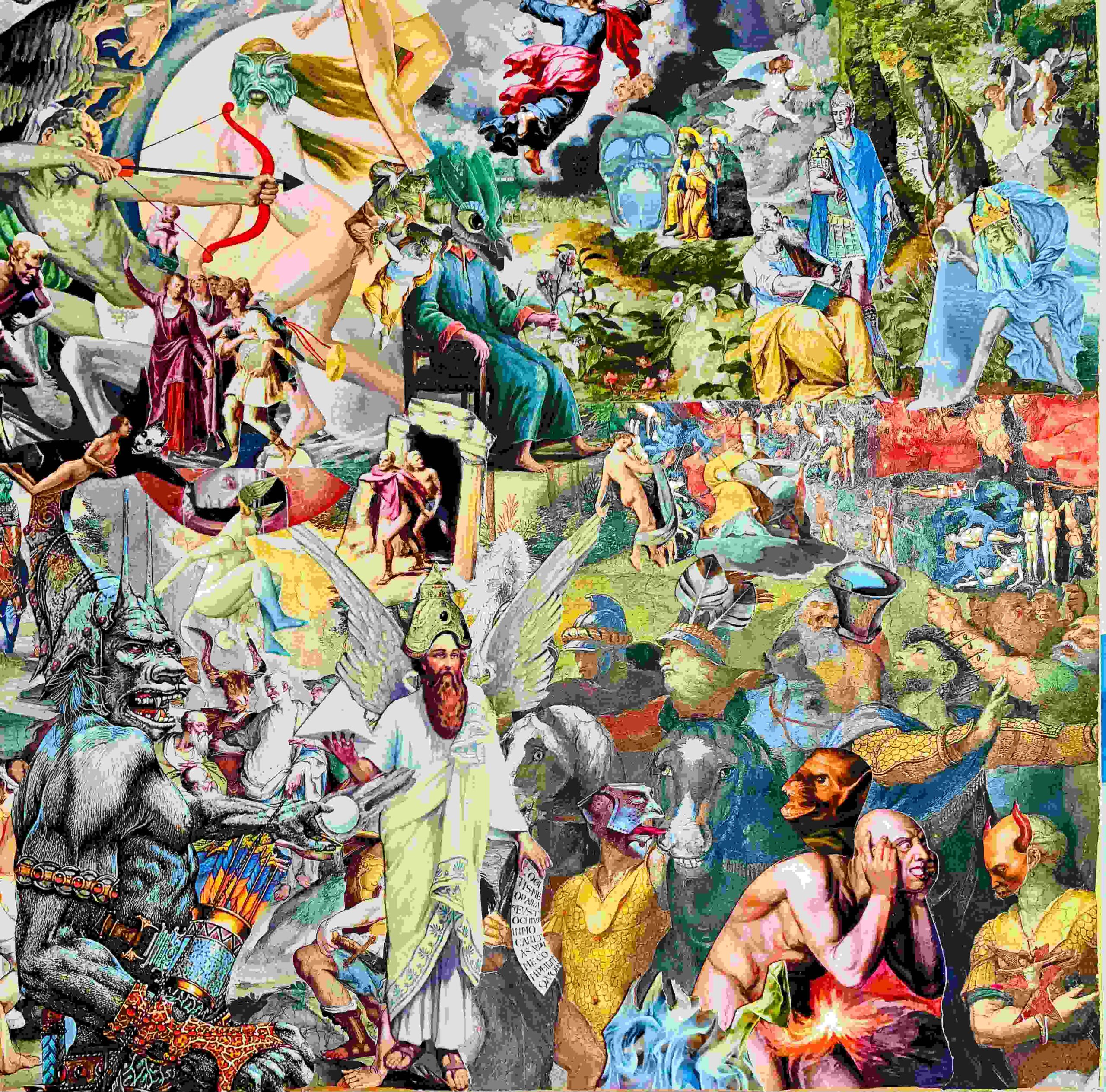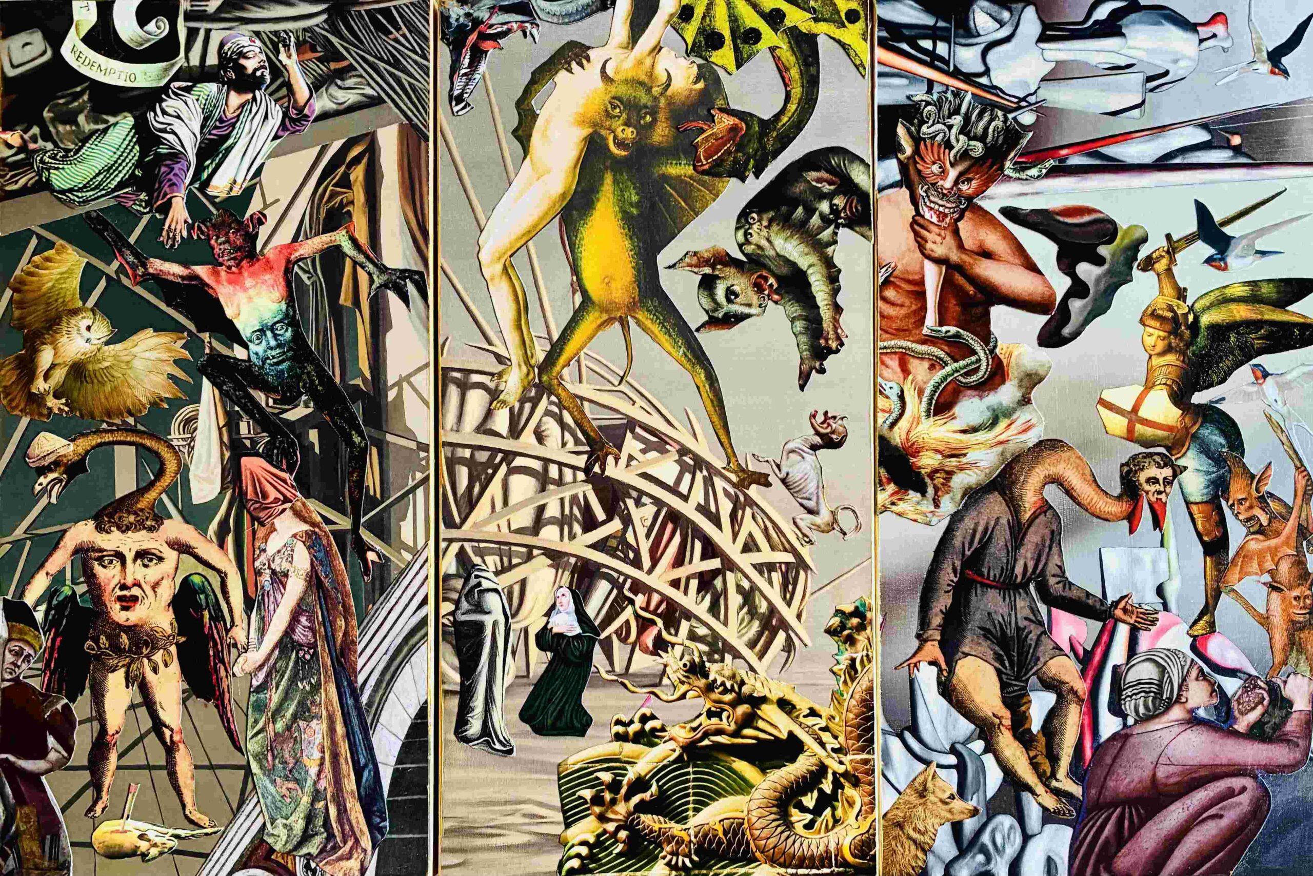 Most of my art has a visual density and complexity – a horror vacui of images which is the product of an anxious mind's fear of space. For me, allowing some breathing room in a piece requires restraint. Although I sometimes work in a larger format, most of my collages are intimate scaled pieces. My visual influences include surrealism, pop art, and comic art. I am also drawn to the raw, potent energy, spontaneity, and bravery of outsider art.