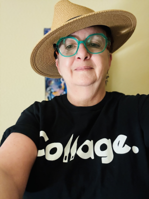 Unwary of embracing absurdity, my collages can be bizarre with dark humor. I am driven by visual art's ability to pull you in, or make you want to look away before it pulls you in. Color energizes me. I find that bright colors can draw viewers in, even into uncomfortable places from which they might otherwise refuse to enter.