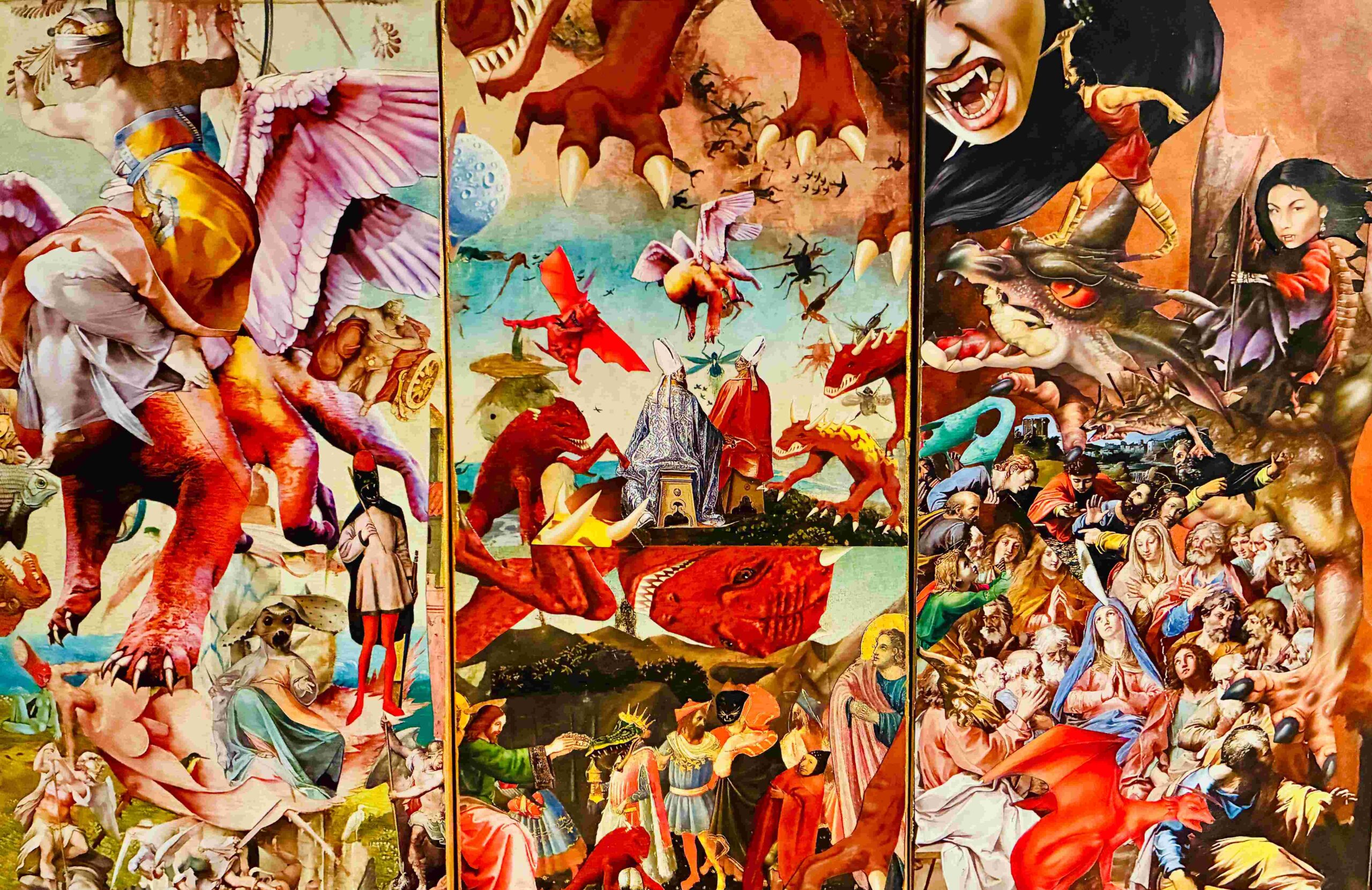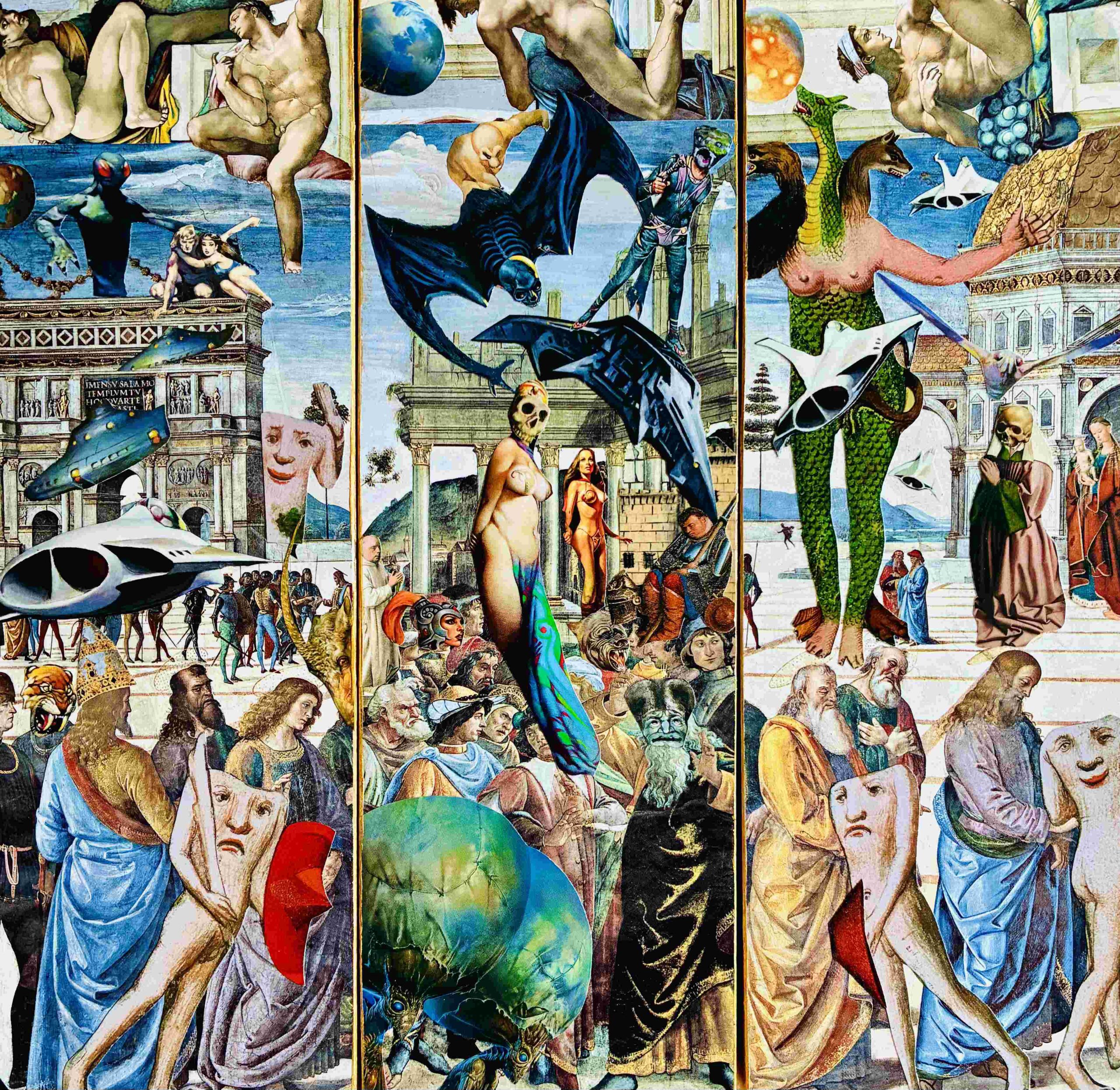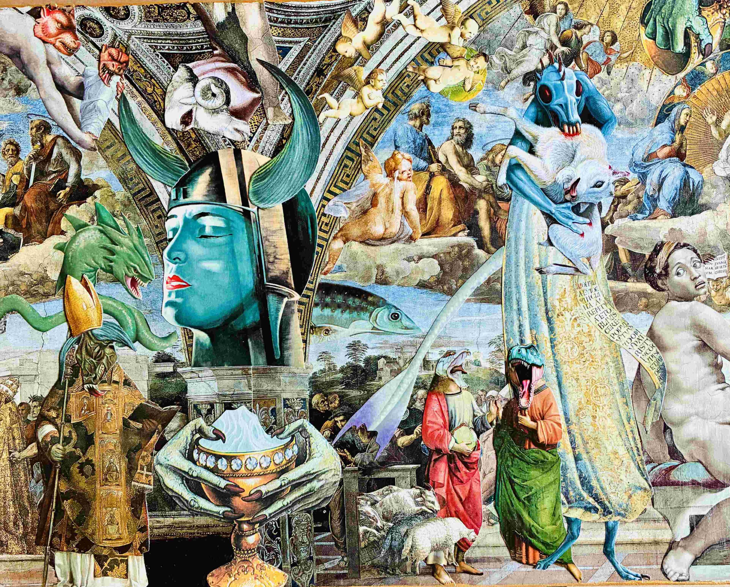 Unzypt Collage is a collection of raw emotional impulses to dystopia. My work is a visual realization of the conflict between the surface and what lies underneath – dual forces that are constantly at play within our own selves and society at large. It is about being unafraid to unzip our inner lives, our authentic feelings, our deepest anxieties. Collage is my medicine and my retreat. I have an anxious mind and am always waiting for the other shoe to drop, a glass half empty thinker by nature and nurture. Through the generative process of creating collages, my worst fears are exorcised and relieved.