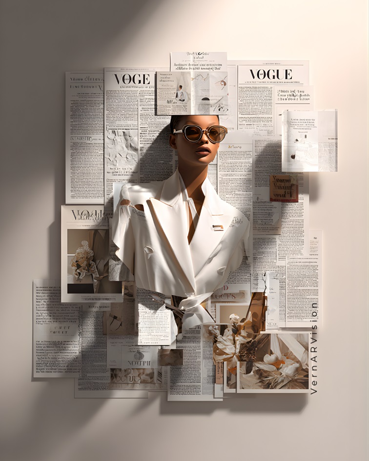 Collage de moda(Fashion collage)Mi segunda faceta se sumerge en las tendencias y el diseño, reinterpretando texturas , siluetas y la elegancia contemporánea para crear composiciones vibrantes y sofisticadas.