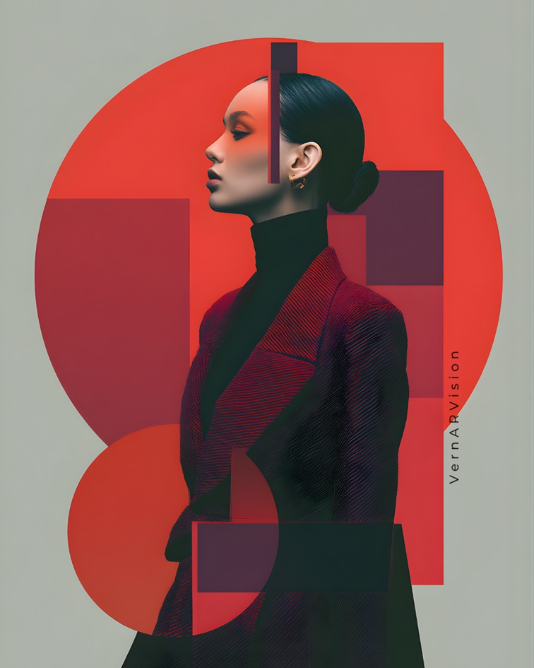 Vanguardia visual, Constructivismo moderno, Rojo vibrante, Geometría sagrada, Moda de autor, España, Fine Art, Contraste cromático, Poder femenino, Diseño de impacto.